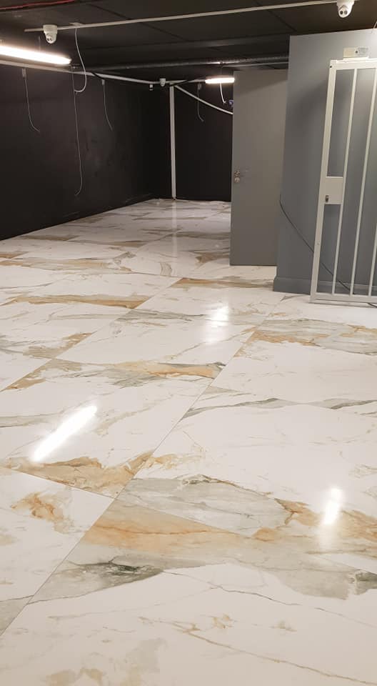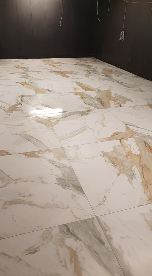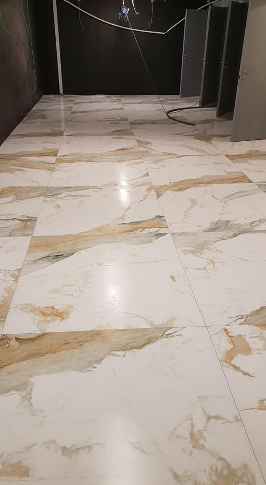 Big floor porcelain tiles, 120x120cm laid on the floor in Dublin center.